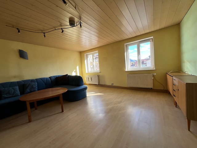 Sonthofen, 2-Familien-Haus in guter Stadtlage mit Ausbaupotential. Einfach ideal sind die kurzen Wege zu Schulen und Geschäften oder öffentlichen Einrichtungen und es sind nur wenige Gehminuten in die Natur. Nicht oft wird ein solches Haus in guter Innenstadtlage verkauft. Die beiden 3- und 4-Zi.-Wohnungen sind frei. Das sonnig gelegene Haus steht frei und ist an einer verkehrsberuhigten Strasse, es eignet sich sowohl zum Wohnen und für ein Gewerbe. Im EG ist die 3-Zi.-Whg. mit ca. 80m², sowie ein Hobbyraum mit neuer Gas-Zentralheizung, sowie Zugang zum Keller- u. Tankraum, sowie Werkstatt oder Garage. Im OG ist die 4-Zi.-Whg. mit ca. 106m², daneben ist die Scheune mit darüberliegendem Speicher. Über dem OG ist der nicht ausgebaute Dachboden, er wird als Stellfläche genutzt. In den Wohnräumen sind Fliesen, Laminat und PVC-Böden verlegt. Die Fenster sind mit Isolierglas, das Dach wurde erneuert. Das Haus ist um ca.1850 erbaut und wurde laufend modernisiert. Die Wohnfläche ist ca.186m², dazu kommen die Nutzfläch der Werkstatt/Garage mit ca. 54m², die Scheue und der nicht ausgebaute Dachboden mit ca. 170m² Nutzfläche. Keller-/Tank- u. Hobbyraum haben ca. 26m². Das Grudstück ist ca.406m² groß. Neben dem angebauten Keller ist kl. Garten.
