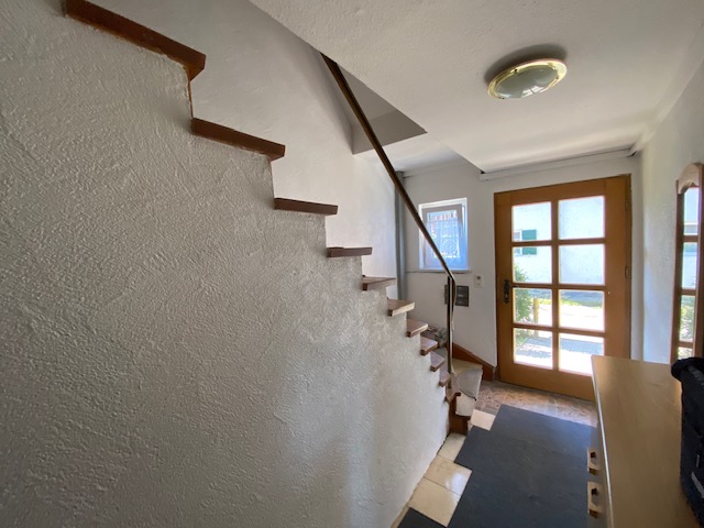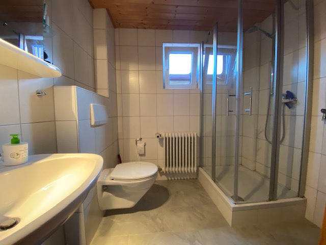 In guter Dorflage mit Bergsicht, steht das Haus mit derzeit 3 Wohnungen und einer Garage für 2 PKW + Motorrad, sowie ein offener Schuppen für Holz, Gartengeräte, Fahrräder usw., davor ist der Hof zum Parken. Das Haus ist unterkellert. Im EG ist eine noch bewohnte ca.135m² (ca.80m²+ca.55m²) große 4,5-Zi.-Whg. mit Westterrasse, eingeteilt in Wohnzi., Flur mit Holzofen, Hauswirtschaftsraum (Küche), 2 Bäder mit WC, 2 Schlafzi., Küche mit EBK und Essraum mit Zugang zum Garten. Die freie 4,5-Zi.-Whg. im OG mit ca.139m² (ca.65m²+ca.74m²) ist mit S/O- und Westbalkon und eingeteilt wie das EG. Im DG ist eine freie 2,5-Zi.-Whg. mit ca.66m², eingeteilt in gr. Wohnzi. mit Ostbalkon, Duschbad mit WC, Küche m. EBK, Ess-/Schlafzi. mit Westbalkon. Die Terrassen- und Balkonflächen sind zur Hälfte angerechnet. Die EG-Whg. kann frei werden oder vorerst weiter abgemietet werden. In den Räumen ist Parkett, Laminat-, PVC u. Fliesenbelag. Die EBK im EG und Einbauschränke sind im Preis enthalten. Das Haus wurde 2008 umfangreich renoviert, das Dach wurde erneuert und Isoliert, die Fenster gewechselt und die Pellet-Heizung eingebaut. Im Garte ist ein still gelegter Erdtank für Heizöl vorhanden.